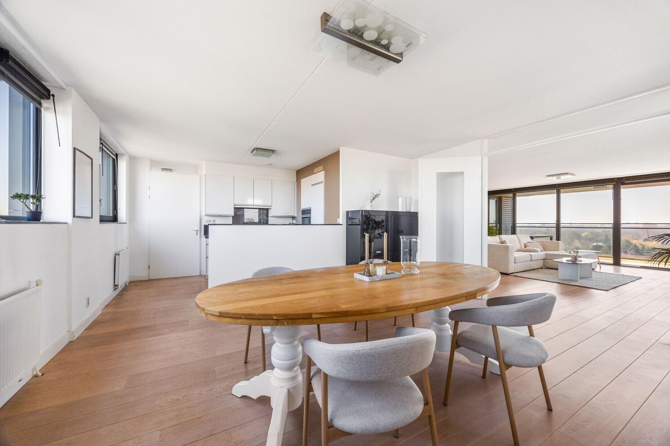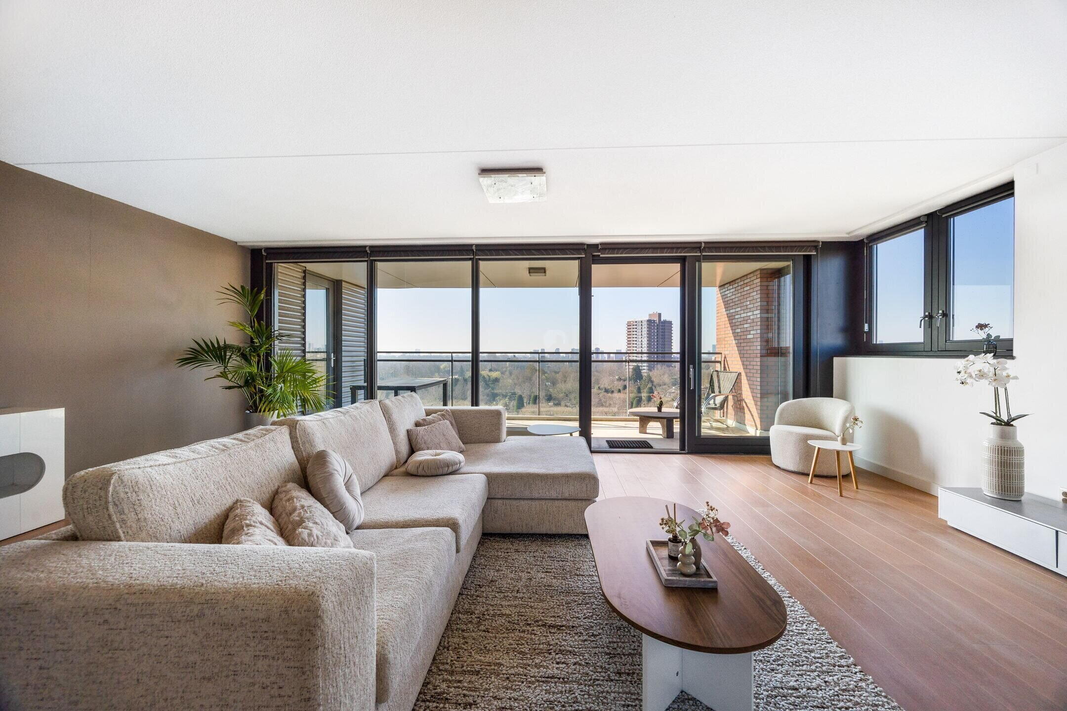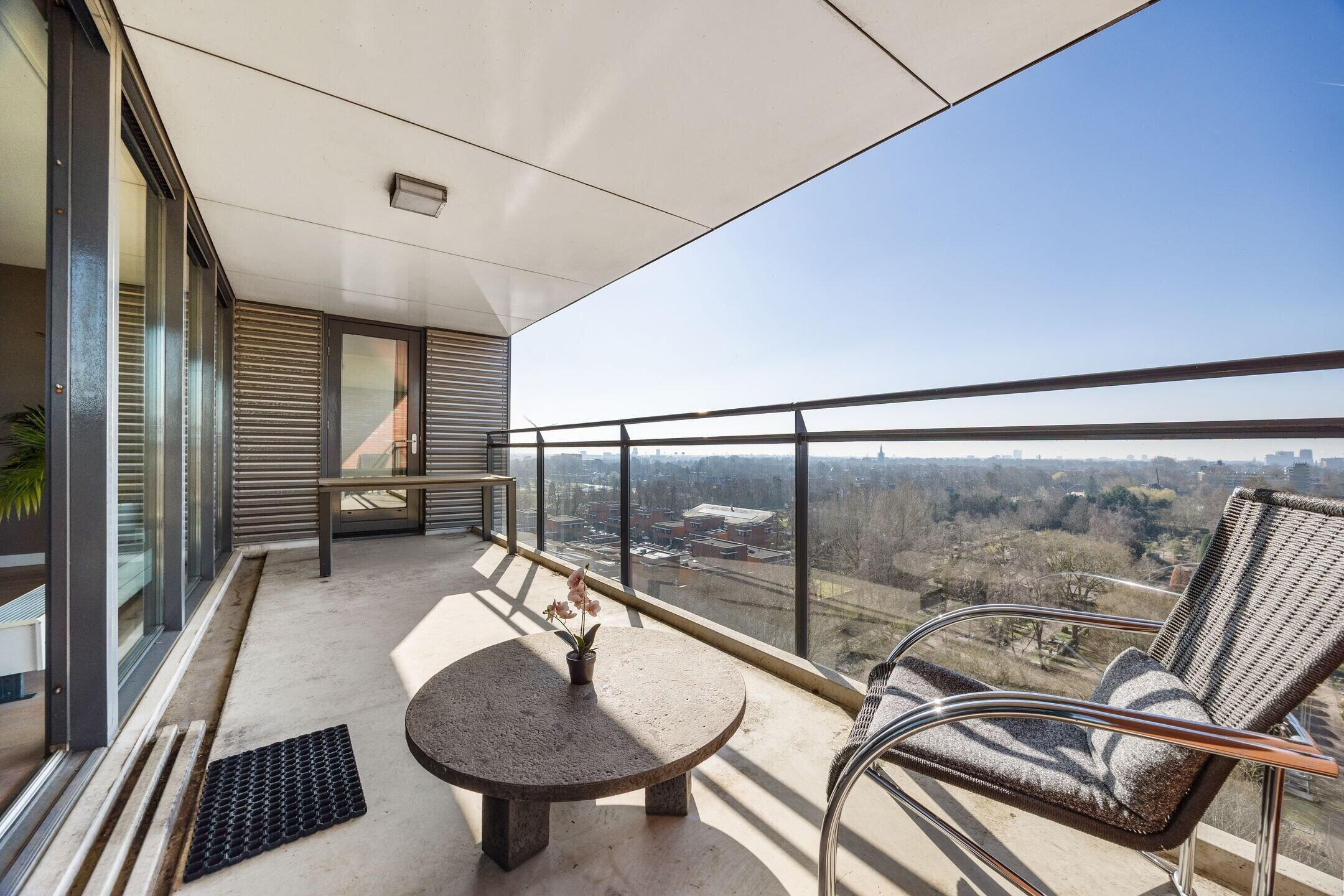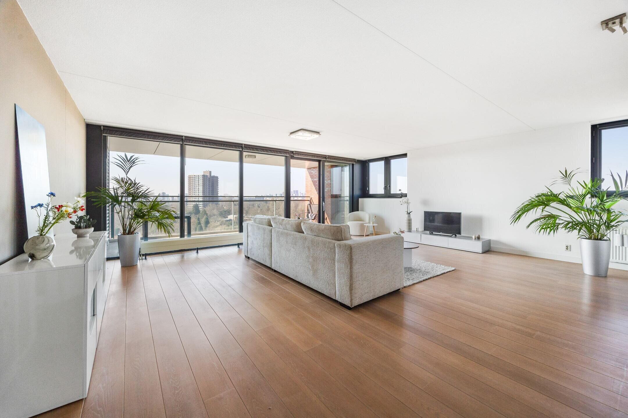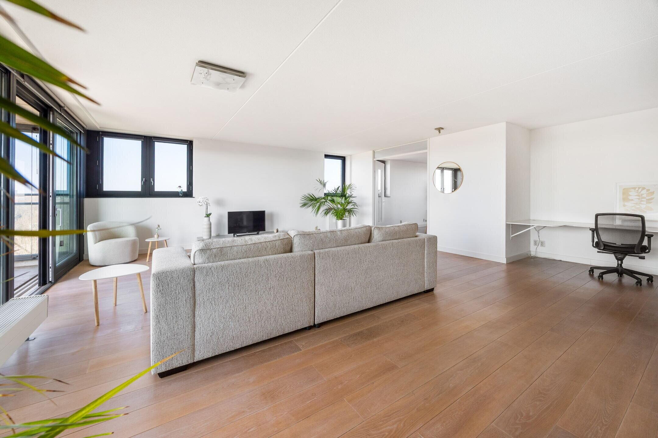 Dit royale appartement heeft een woonopp. van ca. 166 m2, 2 badkamers, een riant dakterras (ca. 20 m2) gericht op het zuidwesten met een adembenemend zicht op ’t Haagsche.