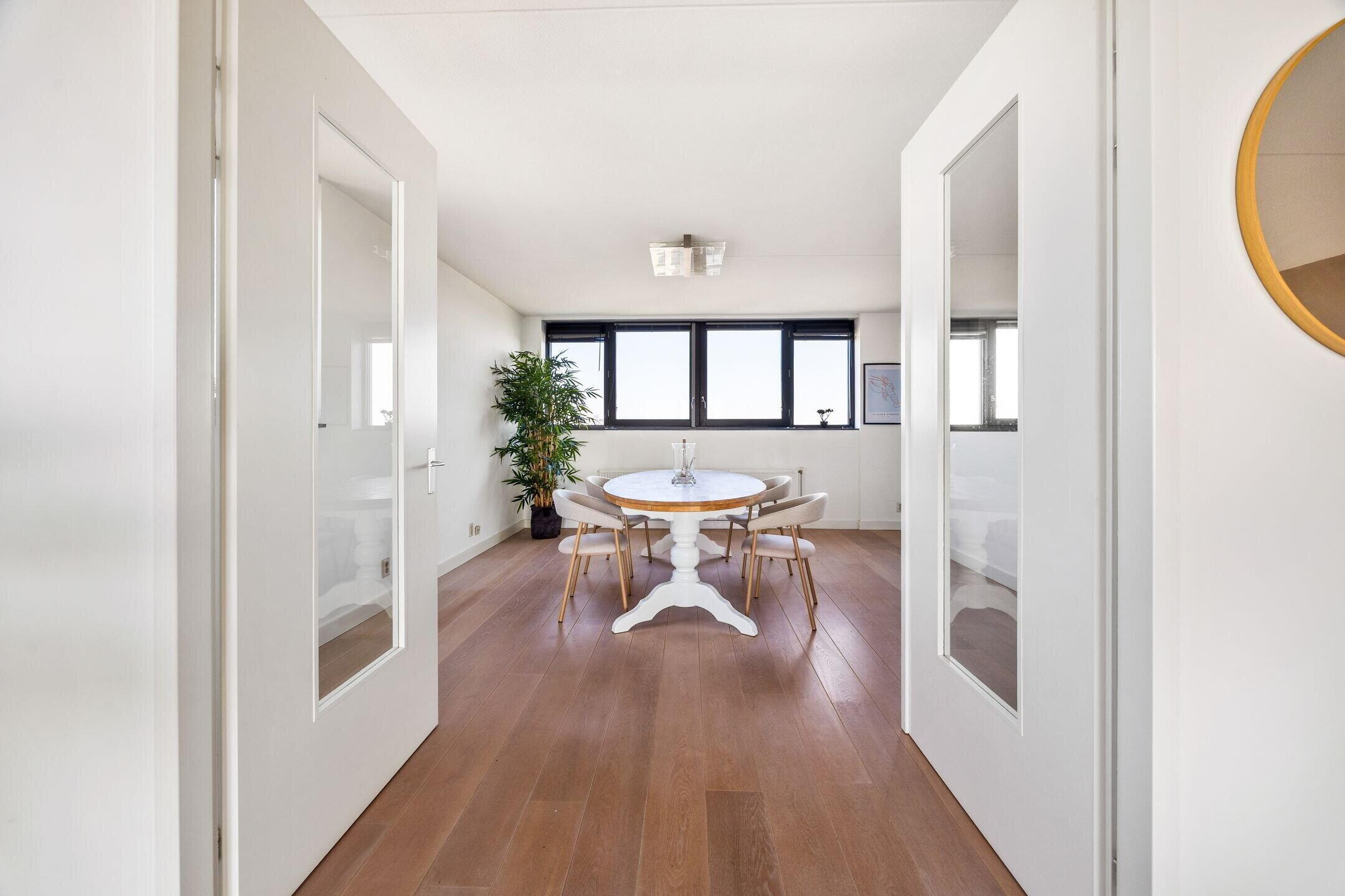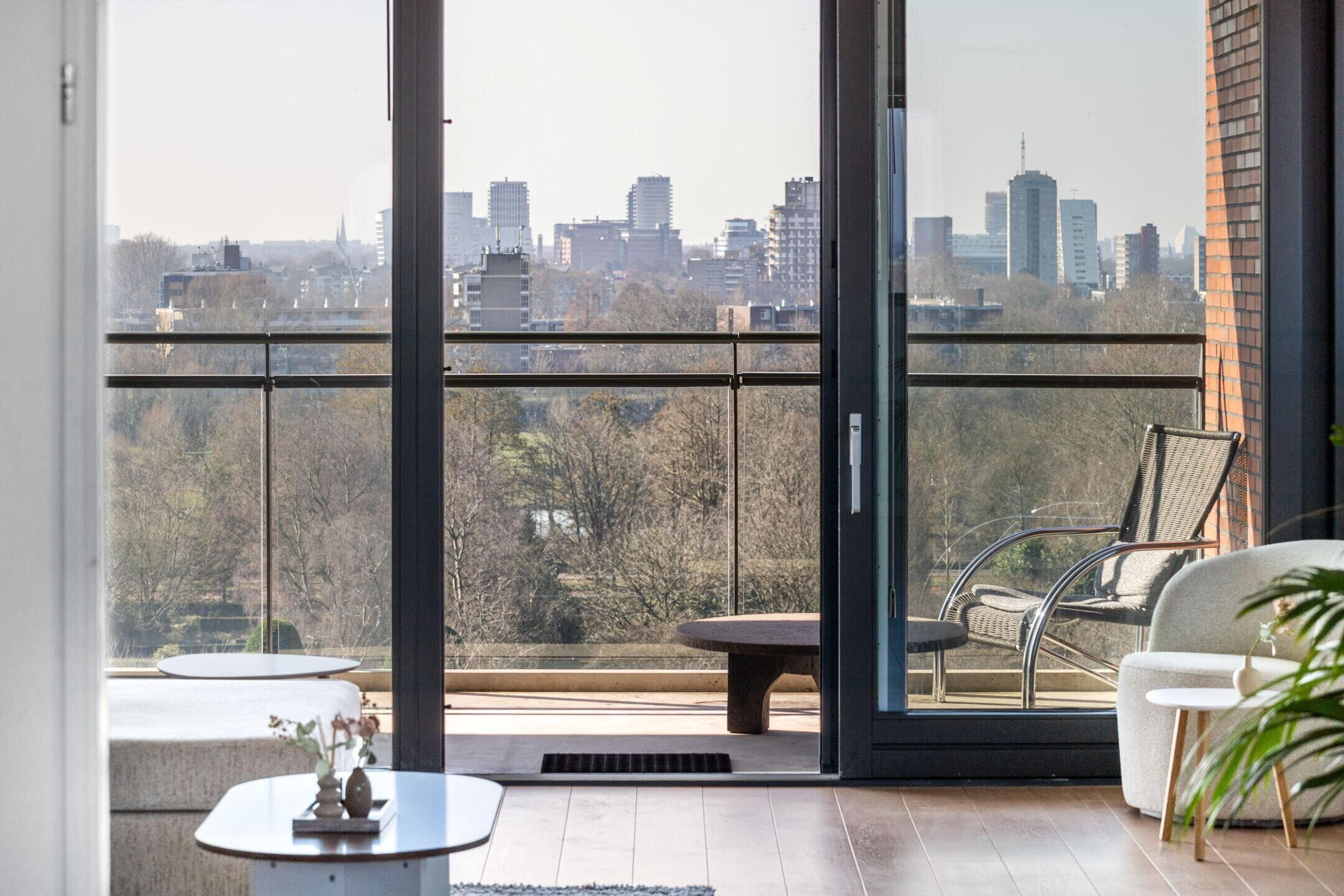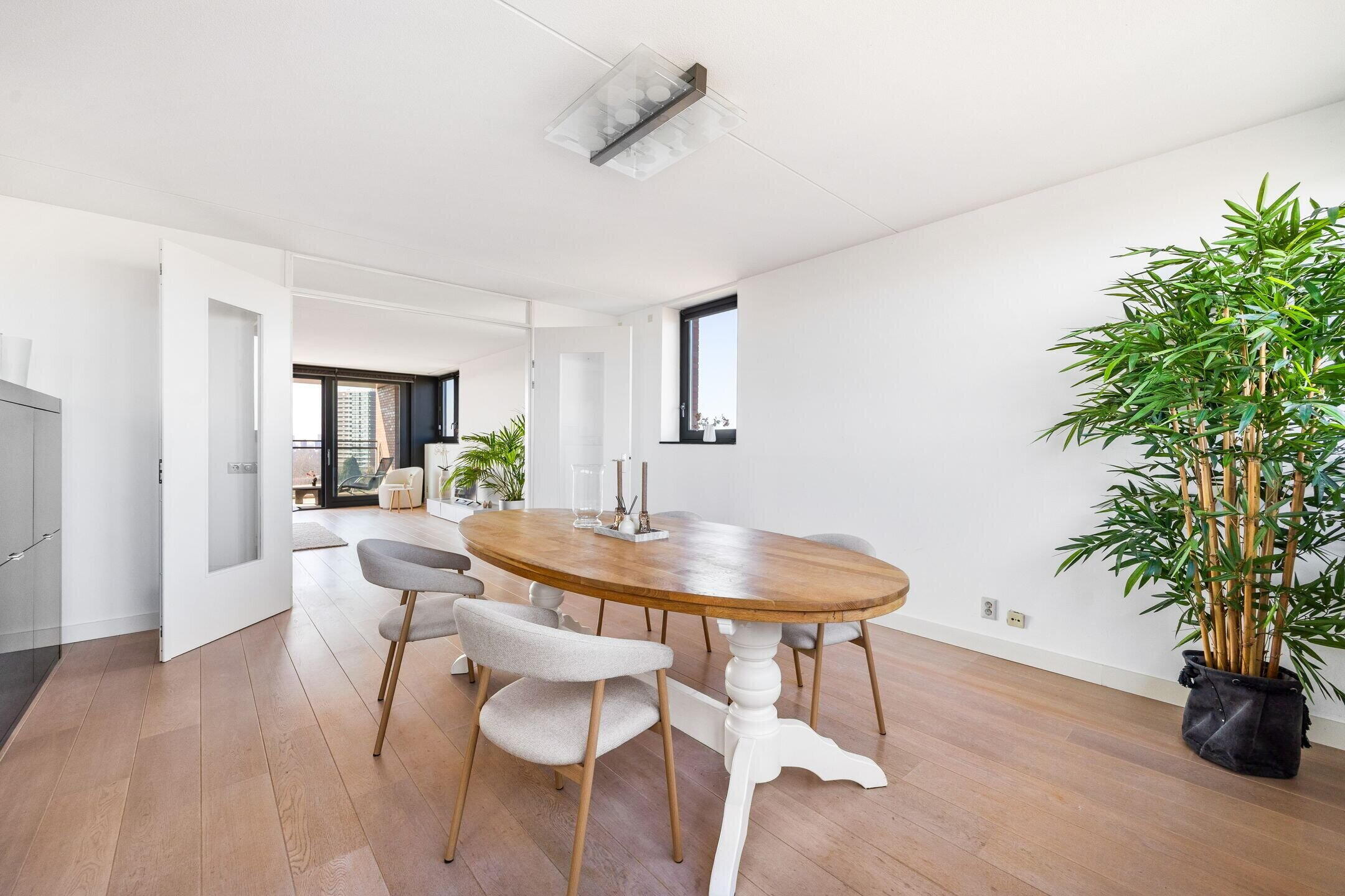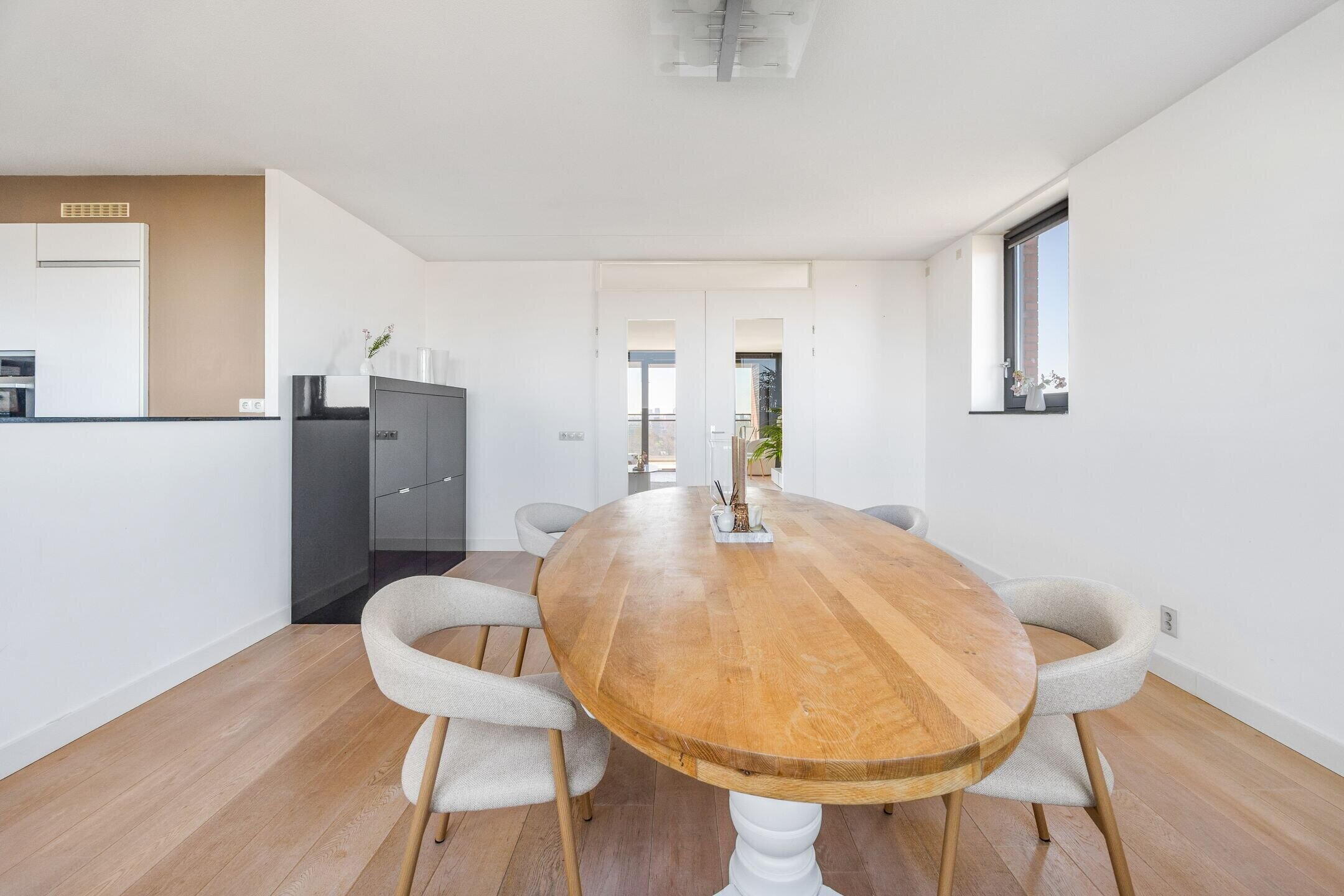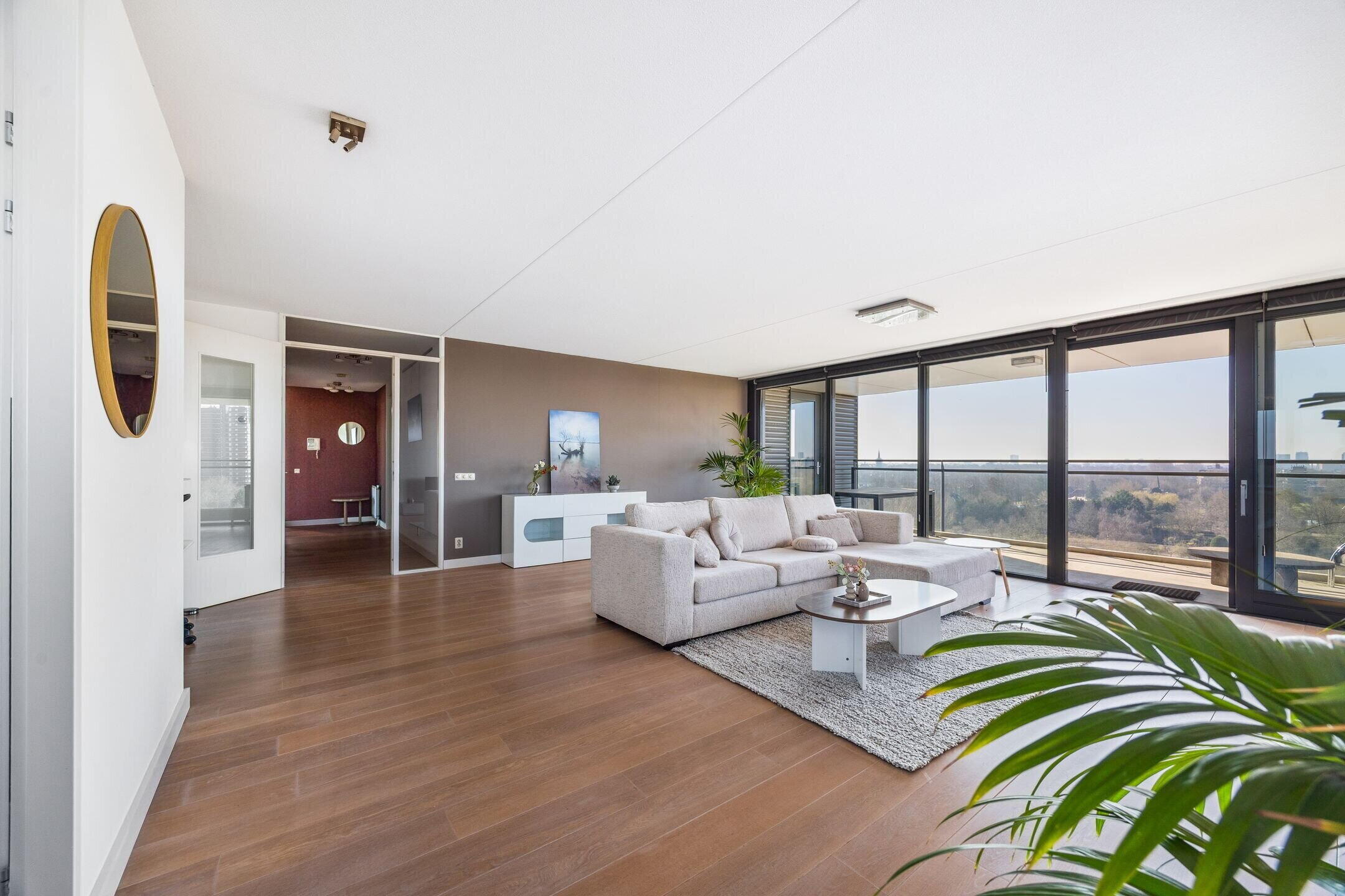 Dit royale appartement heeft een woonopp. van ca. 166 m2, 2 badkamers, een riant dakterras (ca. 20 m2) gericht op het zuidwesten met een adembenemend zicht op ’t Haagsche.