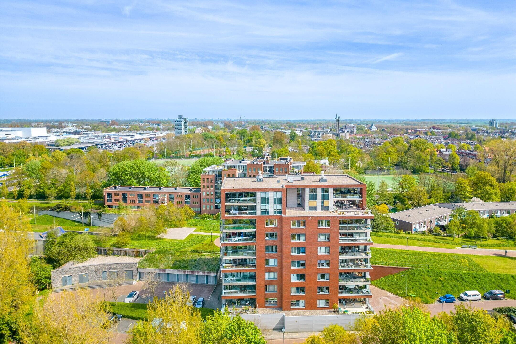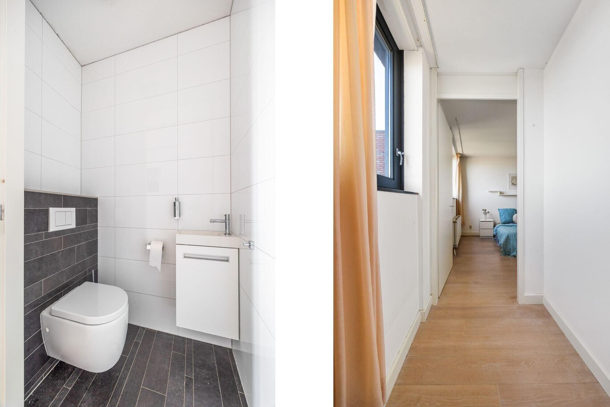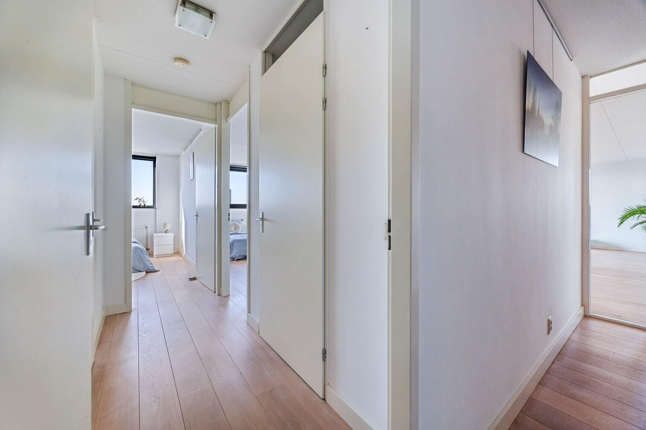 Ruime hal met toiletruimte en toegang tot bijna alle verblijven. Riante living van bijna 80 m² met aan de achterzijde de moderne keuken. Het gehele penthouse is voorzien van een houten vloer. Uniek aan deze living is de toegang tot een riant balkon met fantastisch uitzicht over de hele regio. Grote slaapkamer met toegang naar de badkamer, 2e toilet, bad, douche en dubbele vaste wastafel. Tweede slaapkamer en derde slaapkamer met op de gang een aparte badkamer met inloopdouche en wastafel. Tevens praktische bergruimte in de hal voor o.a. de CV ketel wasmachine en droger. Aparte berging en parkeerplek op de begane grond.
