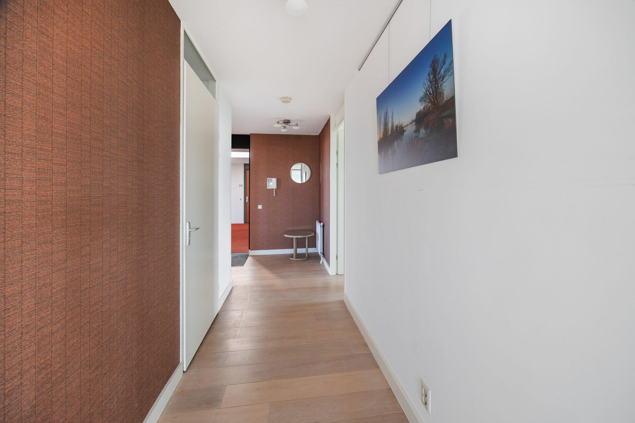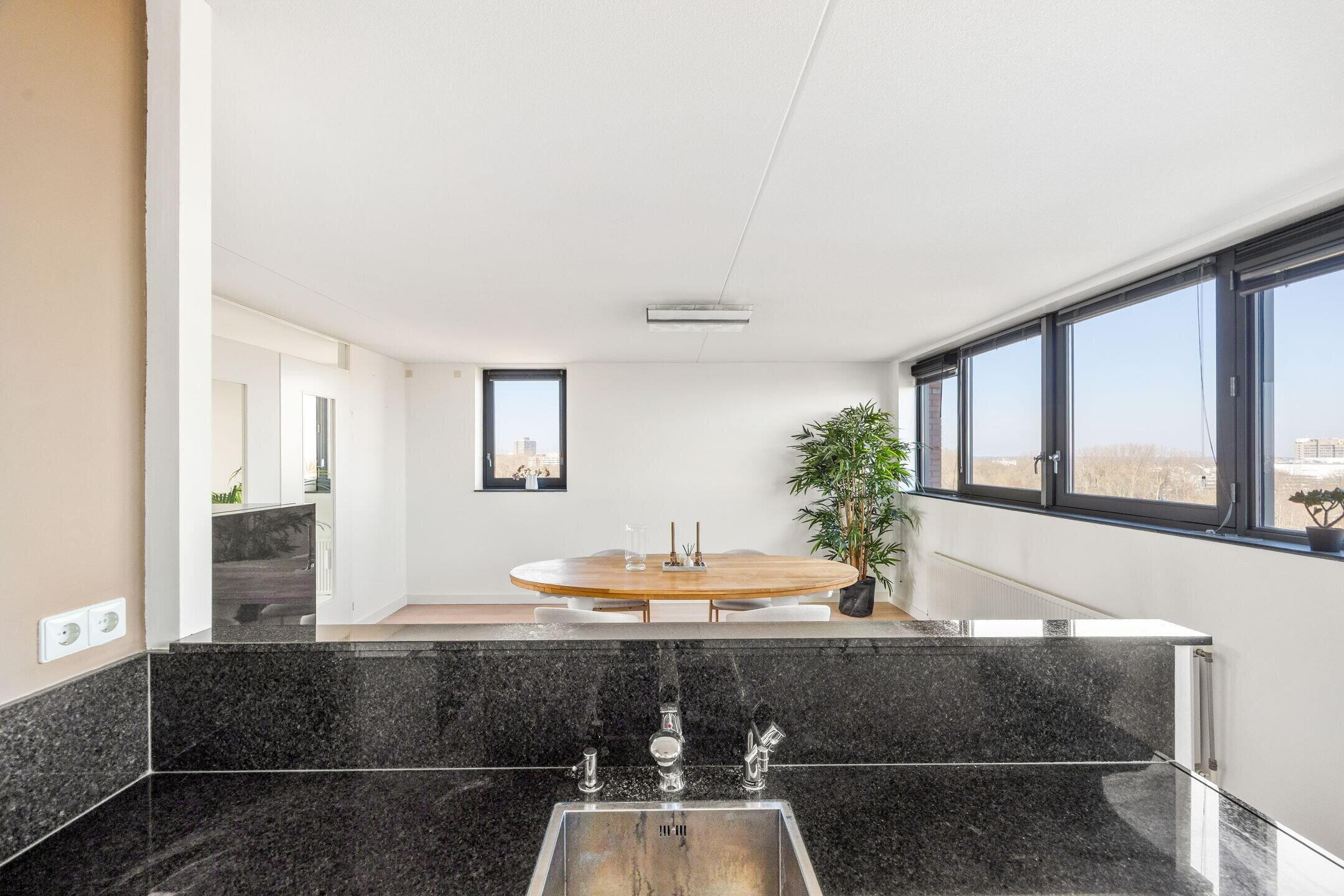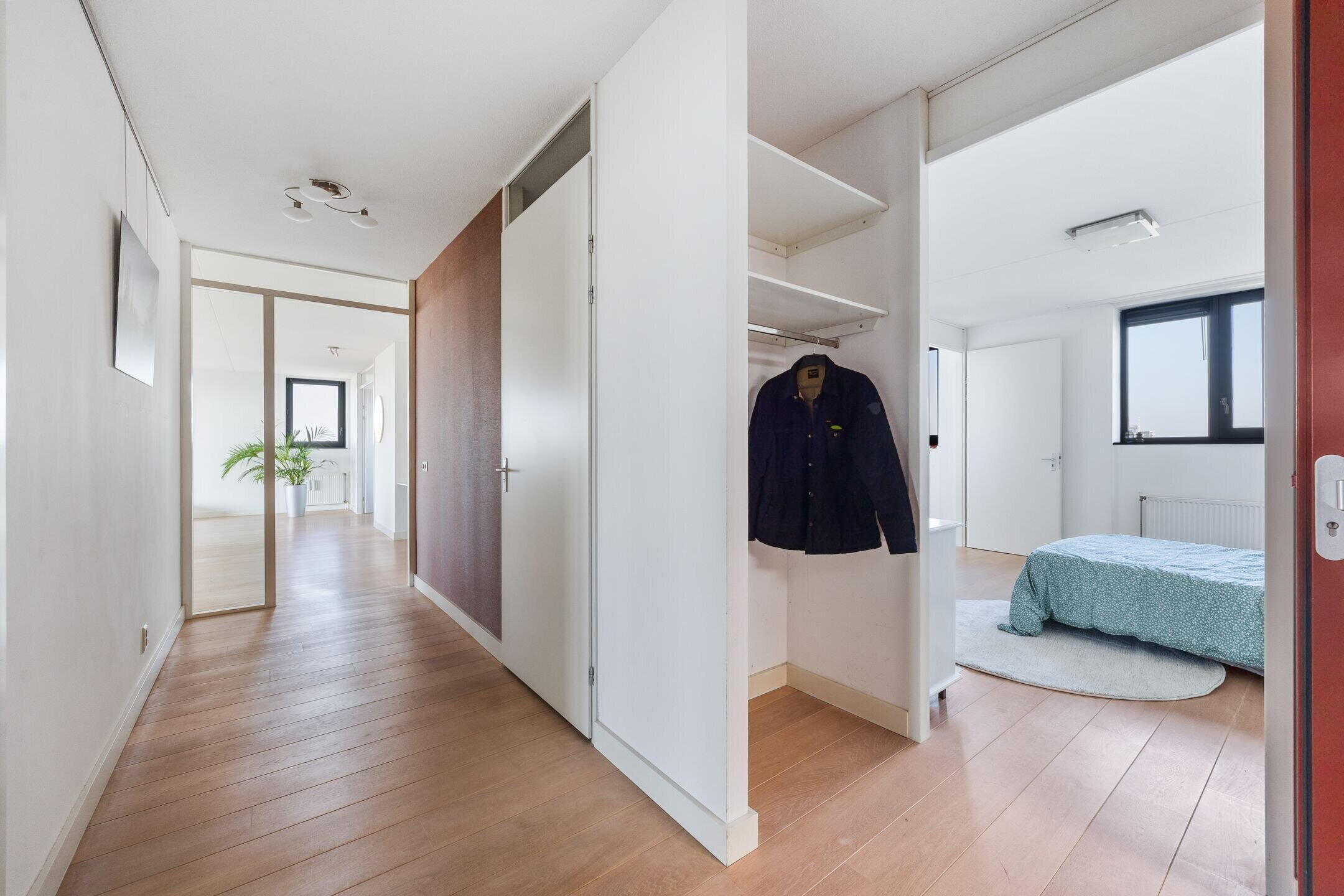 Ruime hal met toiletruimte en toegang tot bijna alle verblijven. Riante living van bijna 80 m² met aan de achterzijde de moderne keuken. Het gehele penthouse is voorzien van een houten vloer. Uniek aan deze living is de toegang tot een riant balkon met fantastisch uitzicht over de hele regio. Grote slaapkamer met toegang naar de badkamer, 2e toilet, bad, douche en dubbele vaste wastafel. Tweede slaapkamer en derde slaapkamer met op de gang een aparte badkamer met inloopdouche en wastafel. Tevens praktische bergruimte in de hal voor o.a. de CV ketel wasmachine en droger. Aparte berging en parkeerplek op de begane grond.
